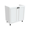 Внутри можно разместить контейнер для отходов, органайзер с моющими средствами или другие нужные предметы. Рамочные фасады придают гарнитуру элегантный вид.